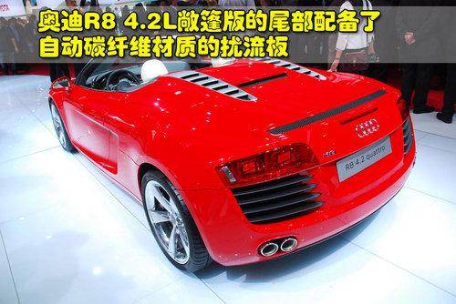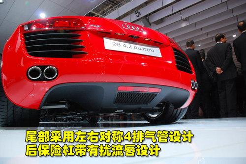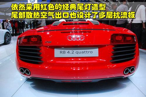 奧迪R8 4.2L敞篷版的尾部配備了自動升級的碳纖維材質(zhì)擾流板,可以進(jìn)一步減輕車身自重。這款新車的尾部依然采用紅色的經(jīng)典尾燈造型,而且尾部的散熱空氣出口也設(shè)計(jì)了多層擾流板。奧迪R8 4.2L敞篷版尾部采用左右對稱的4排氣管設(shè)計(jì),后保險(xiǎn)杠也采用了擾流唇的設(shè)計(jì)。