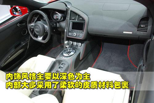 奧迪R8 4.2L敞篷版的內(nèi)飾風(fēng)格主要以深色調(diào)為主,可以很好的突出這款車的運(yùn)動(dòng)特征。中控臺(tái)以及中央扶手等部分大多采用了柔然的皮質(zhì)材料包裹,不僅看上去顯得非常高檔,而且也保證了駕乘的舒適性。另外,這款車的內(nèi)部也有很多細(xì)節(jié)是采用碳纖維材質(zhì)。