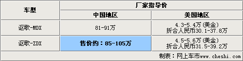 謳歌MDX進(jìn)入中國市場已經(jīng)有三年了,經(jīng)過了兩次改款,已經(jīng)擁有了很好的市場占有率。目前謳歌MDX在中國地區(qū)的售價(jià)為81-91萬,通過謳歌MDX在美國地區(qū)的售價(jià),我們預(yù)計(jì)謳歌ZDX引入中國地區(qū)的售價(jià)約為85-105萬(謳歌ZDX目前美國地區(qū)的指導(dǎo)價(jià)為4.5-5.6萬美金,折合人民幣為31.5-39.2萬元)。