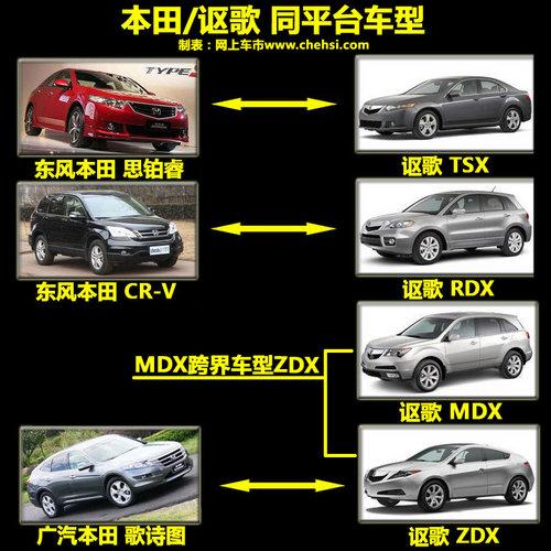 目前廣汽本田/東風(fēng)本田生產(chǎn)的部分車型都與謳歌車型同來自一個(gè)平臺。例如:東風(fēng)本田的高性能運(yùn)動(dòng)轎車思鉑睿就和謳歌TSX同平臺生產(chǎn)。同出一轍東風(fēng)本田的CR-V與謳歌RDX也存在同樣的關(guān)系。而即將上市的廣汽本田歌詩圖則是與謳歌MDX的跨界車型ZDX的平臺相同。廣汽本田歌詩圖上市后的價(jià)格明顯要比原裝引進(jìn)謳歌ZDX的價(jià)格低,當(dāng)然也更容易被中國消費(fèi)者所接受。