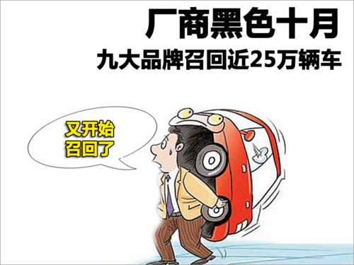 近日,汽車召回事件頻繁上演,已經(jīng)不是當(dāng)初廠商偷偷召回維修的做法,而是讓信息更加的透明。不過(guò)在進(jìn)入傳統(tǒng)的金九銀十時(shí)節(jié),汽車召回也是不甘落后,僅在10月份就有九大品牌近25萬(wàn)輛車實(shí)施召回,這其中還包括勞斯萊斯、賓利等頂級(jí)豪華品牌的車型。