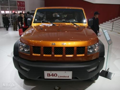 就我們目前了解到的情況看,B40車身尺寸為4200/1800/1750mm,軸距為2400mm,發(fā)動機(jī)采用2.4L直列四缸發(fā)動機(jī),最大功率105kw(141馬力)/4800rpm,最高扭矩217N/3000-4000rpm。匹配5速手動變速箱,采用分時(shí)四驅(qū),整體式橋,并且可選擇在后橋安裝限滑差速器,F(xiàn)RP可拆卸頂篷。