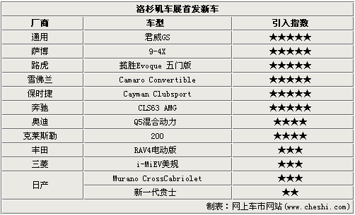 在這屆洛杉磯車展上,12款新車首發(fā)涵蓋了美、德、日等廠商,在車型類型則有轎車、敞篷跑車、SUV、MPV等,除此之外還有純電動車登場。這其中君威GS、9-4X、攬勝Evoque 五門版等6款車預(yù)計明年引入國內(nèi),其他如奧迪Q5混合動力、克萊斯勒200、純電動RAV4也有引入的可能。