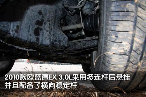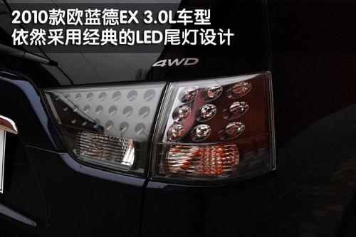 三菱2010款歐藍(lán)德EX 3.0L車型與其他排量車型相比,尾部的變化并不明顯,尾燈依然采用了傳統(tǒng)的LED設(shè)計,全尺寸備胎采用后部底盤懸掛式配備。但歐藍(lán)德EX 3.0L車型尾部采用雙排氣管的設(shè)計,畢竟排量大了。歐藍(lán)德EX 3.0L車型采用多連桿獨(dú)立后懸掛,配備了橫向穩(wěn)定桿,可以更好的提高操控性。