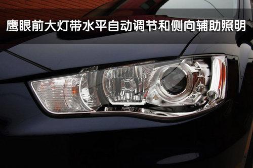 三菱2010款歐藍(lán)德EX 3.0L車型的前大燈采用鷹眼式設(shè)計,并且?guī)в兴阶詣诱{(diào)節(jié)功能和側(cè)向輔助照明功能。與歐藍(lán)德EX其他排量不同的是,3.0L車型的前霧燈和前臉周圍都帶有鍍鉻裝飾,這一點與EVO X非常相似。另外,歐藍(lán)德EX 3.0L的前保險杠底部配備了護(hù)板。