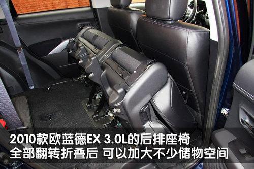 歐藍(lán)德EX 3.0L車型的后排座椅既可向前翻轉(zhuǎn),拓展出更多的后行李箱空間,同時也可靠背放倒,并且4/6按比例分離,在有后排乘員的情況下,仍能放置長尺寸的物品。
