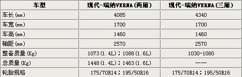 現(xiàn)代瑞納VERNA與i20同平臺(tái)生產(chǎn),兩廂車(chē)型在前臉設(shè)計(jì)上與三廂不會(huì)有太大的不同,車(chē)身尺寸上除了長(zhǎng)度外,其他與三廂車(chē)型基本相同,三廂版瑞納,寬為1700mm,高為1460mm,軸距為2570mm,車(chē)身比雅紳特要大了不少。關(guān)于兩廂版瑞納的詳細(xì)信息請(qǐng)參見(jiàn)下表: