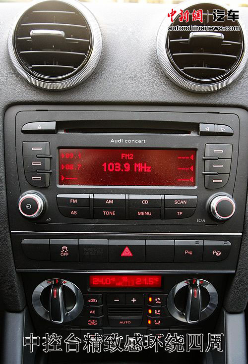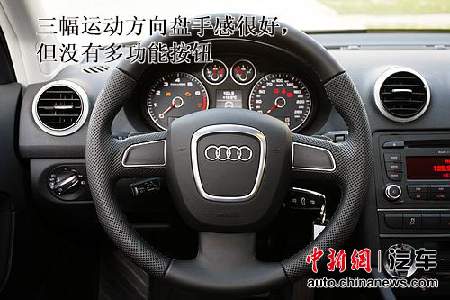 A3的方向盤手感著實(shí)不錯(cuò),兩側(cè)皮質(zhì)上的花紋大大增強(qiáng)了握感和防滑性,大小也相當(dāng)適中。只是讓我大惑不解的是,為什么在一輛售價(jià)30余萬,配備了自動(dòng)空調(diào)、方向盤換擋撥片、電動(dòng)座椅調(diào)節(jié),甚至自動(dòng)泊車系統(tǒng)的車型上,竟然沒有裝備小小的多功能方向盤?