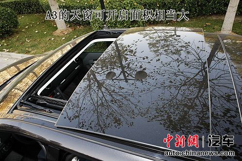 前后雙天窗是這輛車上最奢侈的舒適性裝備。不像A5只能微微向上開啟的全景天窗基本只是個擺設(shè),A3的天窗可開啟面積相當(dāng)大,而且前后都有遮陽簾。