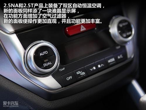 同樣在2.5NA和2.5T產(chǎn)品上裝備了雙區(qū)自動恒溫空調(diào),新的面板同樣有一塊液晶顯示屏,在功能方面增加了空氣過濾器,新的面板使操作更加直觀,并且功能更加豐富。
