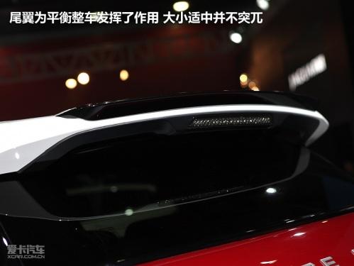 車尾左方EVOQUE表明身份,RANGE ROVER標(biāo)示屬攬勝系列,以及出自路虎世家,簡潔明了,造型與家族式風(fēng)格相近。