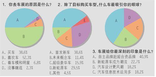 對廣州車展你感興趣嗎?車展上什么車最吸引你的眼球?本屆車展給你最深刻的印象是什么?上周,本報聯(lián)合新浪汽車進(jìn)行了調(diào)查,結(jié)果顯示,大部分的讀者對汽車有著濃厚的興趣,而且對新車以及新能源車的關(guān)注度遠(yuǎn)遠(yuǎn)超過了明星車模。