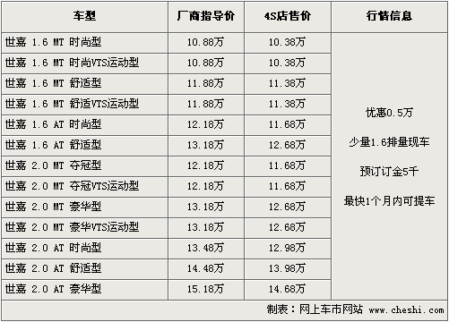 據(jù)東風雪鐵龍4S店銷售人員介紹,世嘉目前在售車型共有13款,全系優(yōu)惠5千元,現(xiàn)車只有部分1.6排量車型,2.0車型需要預(yù)訂,訂金5千元,最快1個月內(nèi)就可以提車。另據(jù)了解,所有手動款車型都有普通版及VTS運動版可供選擇,其價格是完全相同的,可根據(jù)消費者自身要求購買。如消費者有意購買,到店詳談會有更優(yōu)惠的價格。北京地區(qū)各4S店由于訂單不同,各店銷售的現(xiàn)車顏色有所不同。