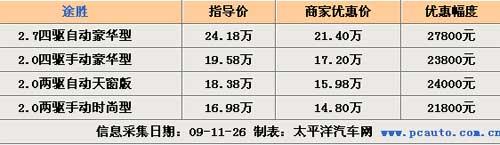 日前,編輯走訪北京現(xiàn)代二級經(jīng)銷商時(shí)了解到,目前購買途勝全系車型可享受最高2.78萬元現(xiàn)金優(yōu)惠,其中2.0兩驅(qū)手動(dòng)時(shí)尚型最終售價(jià)僅為14.8萬元,優(yōu)惠后的性價(jià)比還是很不錯(cuò)的,店內(nèi)現(xiàn)車情況較充足,具體詳情見下表: