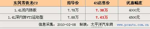 筆者近日走訪北京東風(fēng)雪鐵龍4S店時獲悉,目前店內(nèi)一批1.4L C2增配車型正進(jìn)行促銷,除了增加(駕駛座椅高度可調(diào)、電動后視鏡、電動后窗)等配置外,現(xiàn)金優(yōu)惠方面也最高達(dá)到了4500元,算下來累積優(yōu)惠達(dá)到萬元左右。據(jù)了解4S銷售人員表示他們更看好1.4升車型在北京市場的銷售,原因主要是C2作為一款以運動、時尚和外觀為特點的小車型,吸引的更多是年輕人的目光,而這批獨有顏色的車型也是為了迎合了此類需求。