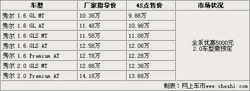 據(jù)東風(fēng)悅達(dá)起亞4S店銷售人員介紹:現(xiàn)在購買起亞秀爾全系均可以得到5000元的現(xiàn)金優(yōu)惠。目前秀爾現(xiàn)車充足,顏色也比較齊全,現(xiàn)車顏色以白色、銀色、橙色、紅色為主。2.0車型需要預(yù)訂,需要繳納訂金5000元,一周左右可以提到現(xiàn)車。北京地區(qū)各4S店由于訂單不同,各店銷售的現(xiàn)車顏色有所不同,消費(fèi)者在購買前可以多去幾家4S店。
