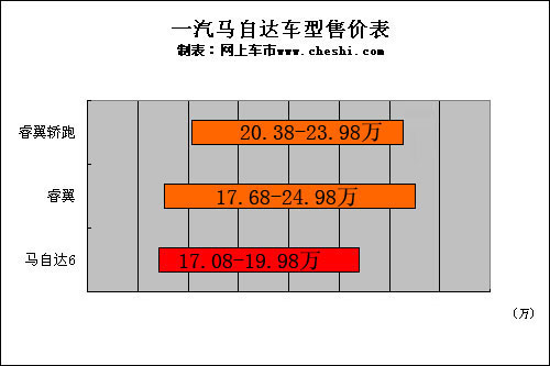 隨著睿翼2.0L轎車和睿翼轎跑的相繼上市,一汽馬自達國產(chǎn)的車型達到了3款,分別為:睿翼、睿翼轎跑和馬自達6。而一汽馬自達也成了國內(nèi)中高級轎車中陣容最齊整、價格跨度最大的產(chǎn)品系列(三款車型的售價區(qū)間為:17.08萬——23.98萬)。近日一汽馬自達副總經(jīng)理于洪江在接受媒體采訪時表示:在睿翼全系車型羽翼漸豐后,備受消費者喜歡的老款馬自達6也將近期有新車型推出。