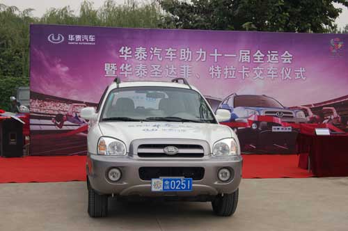 據(jù)悉,第十一屆全運會開幕式將于2009年10月16日舉行,華泰汽車交付的22輛華泰圣達菲和華泰特拉卡將從即日起往返于各大賽區(qū),為一萬多人的開幕式和三千多人的閉幕式的排練、演出工作提供全程服務。