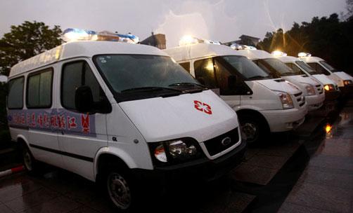 江鈴緊急趕制的5輛福特全順救護車一到達災(zāi)區(qū),立即被派往受災(zāi)前線救護受災(zāi)民眾