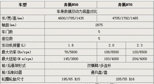 一汽奔騰新款轎車-B50即將在5月16日正式上市,作為向下擴展的重要車型,它被一汽寄予了很大的期待。據(jù)悉,B50將推出1.6L的手動、自動5個型號的車型,分別為1.6L MT豪華型、1.6L AT 豪華型、1.6L MT 尊貴型、1.6L AT 尊貴型及特別的1.6L AT 3G型,這里就將這款新車與B70做一個詳細的配置對比,看看兩款兄弟車型到底區(qū)別在那里。