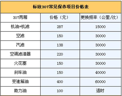 5.保養(yǎng)費(fèi): 我們向標(biāo)致4S店售后服務(wù)人員咨詢過(guò),他們說(shuō)307一大優(yōu)勢(shì)是保養(yǎng)周期比較長(zhǎng),1.5萬(wàn)公里才需要保養(yǎng)一次,是同級(jí)車型中保養(yǎng)花費(fèi)最低的。通常新車首保在7500公里時(shí)進(jìn)行,以后每1.5公里保養(yǎng)一次。第二次1.5萬(wàn)公里時(shí)的常規(guī)保養(yǎng)(更換機(jī)油機(jī)濾)需花費(fèi)287元;3萬(wàn)公里保養(yǎng)(更換機(jī)油機(jī)濾+空濾+空調(diào)濾芯+汽濾+火花塞)為795元;4.5萬(wàn)公里保養(yǎng)(更換機(jī)油機(jī)濾)花費(fèi)287元;6萬(wàn)公里保養(yǎng)(更換機(jī)油機(jī)濾+空濾+空調(diào)濾芯+汽濾+火花塞)為795元。