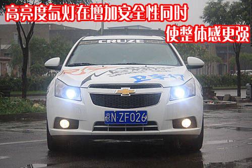這個(gè)“街跑”科魯茲主要針對(duì)外觀進(jìn)行了一系列改裝。首先,它的車頭部分最為顯著的改變?cè)谟谠黾恿烁吡炼鹊碾瘹獯鬅,使原本炯炯有神的“鷹眼”更加夸張,不僅看起來(lái)漂亮,而且提高了夜間行駛安全性。