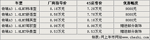 奇瑞A3自動(dòng)擋暫時(shí)無車 手動(dòng)擋優(yōu)惠近萬元
