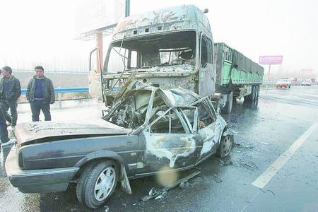 無獨(dú)有偶,2010年歲首,在京港澳高速公路轉(zhuǎn)連霍高速公路下道口處又發(fā)生一起追尾事故,所幸無人員傷亡。
