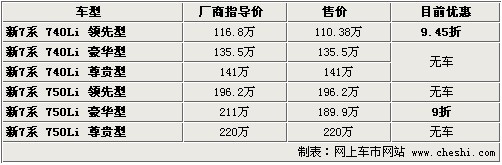 據(jù)4S店銷售人員介紹:目前新款7系現(xiàn)車較少,大部分需要預訂,預定時間基本在3-4個月時間,最長需等4個月以上。目前店內(nèi)只有740Li領(lǐng)先型及750Li豪華型少量現(xiàn)車,顏色有太空灰色。在優(yōu)惠政策方面,740Li系列可以打9.45折,750Li系列可以打9折,喜歡的朋友可以到店內(nèi)洽談,還可獲得更高的優(yōu)惠。