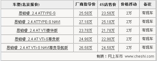 東風本田旗下的首款運動中高級車型——思鉑睿于09年9月初上市,全系共計五款車型,售價為23.78萬元—27.18萬元。上根據(jù)網(wǎng)上車市價格監(jiān)測系統(tǒng)顯示,目前購買思鉑睿全系可優(yōu)惠現(xiàn)金2萬元,現(xiàn)車方面較為齊全。具體車型行情如下: