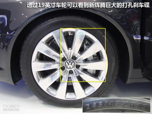 盡管輝騰的外觀一直保持低調(diào)的設(shè)計風(fēng)格,然而性能卻絲毫不遜色。在國外它是與奧迪A8、寶馬7系同級別的競爭對手。從它的車輪就可以看出平凡的外邊下隱藏著的是澎湃的“心”,19英寸的大輪轂難以掩飾藏在它后面的巨大的剎車碟。