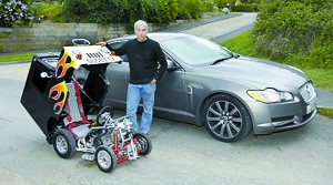 沃特金斯是一名銷售主管,日常坐駕是一輛豪華的“美洲虎”。不過“美洲虎”顯然不如迷你車?yán)L(fēng),沃特金斯上周首次把不足1米高的小車開上街時,引來不少人驚訝的目光。