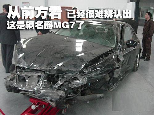 當(dāng)我們看見(jiàn)這輛被拖回來(lái)的名爵MG7時(shí),因?yàn)檐?chē)輛受損比較嚴(yán)重,如果不看車(chē)尾從車(chē)頭方向看上去,已經(jīng)很難辨認(rèn)出這到底是一輛什么車(chē)了。