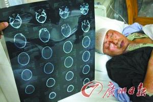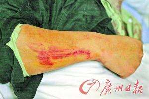 昨天晚上,記者趕到了救治黃國順的中山三院。當(dāng)時(shí),護(hù)士正在為他換藥包扎傷口,黃國順指了指床下的染紅藥布,告訴記者這是他妻子剛剛為他擦掉的血跡。
