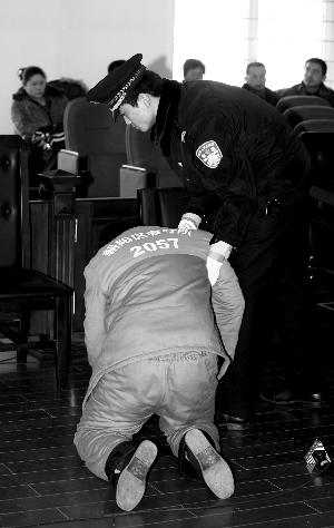 昨天9時(shí)30分,劉平被帶入法庭時(shí),向旁聽席上的死者家屬和劉母深深鞠一躬,并大聲說“對(duì)不起!”