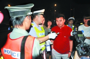 據(jù)東城交警介紹,除了拘留之外,馬力爭(zhēng)已依法被記12分,還要接受1800元罰款,暫扣駕駛證6個(gè)月。在查獲馬力爭(zhēng)之前的10分鐘,河北女司機(jī)熊某在同一地點(diǎn)被攔下,她每百毫升血液中酒精含量為23毫克,屬于酒后駕駛,被處記12分,罰款500元,暫扣駕駛證3個(gè)月的處罰。(許建明 攝)