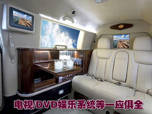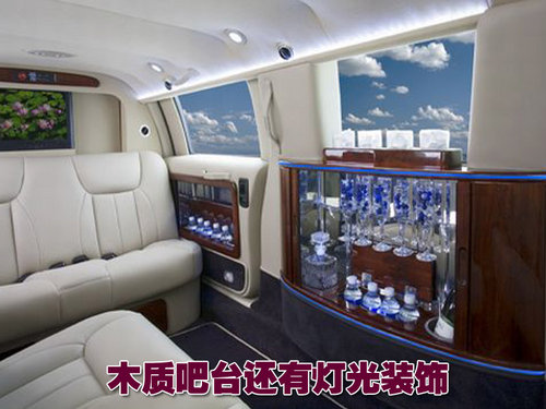上等的真皮裝潢、電視以及DVD娛樂系統(tǒng)、小型酒吧臺均是該車的必要配置,此外其還擁有WiFi 無線網(wǎng)絡(luò)系統(tǒng)。12伏的電源插口,不銹鋼點綴裝飾的木質(zhì)裝飾吧臺還有燈光作為點綴。