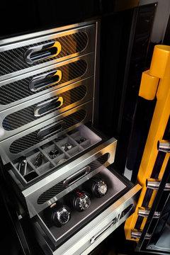 蘭博基尼特別版保險箱內(nèi)部擁有很多分層,可以方便、安全的存放不同的物品。如果您是蘭博基尼的車主,在配一款如此特別的保險箱,必然會非常惹人羨慕。不過,及時你將貴重的鐘表、首飾及珠寶等物品放入其中,您也仍然可以放心的駕駛自己的愛車去遠郊兜風。