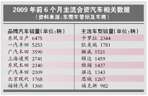 作為東莞車市的中流砥柱,合資汽車在經(jīng)濟大環(huán)境回暖的情況下,上半年銷量不斷上升。東風(fēng)日產(chǎn)銷量穩(wěn)居第一,一汽豐田、廣汽本田分居其后。在銷量上出現(xiàn)新的變化是北京現(xiàn)代、上海通用這兩大品牌,在銷量上增長快于其他非日系車。