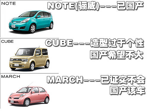 我們?cè)诓殚喠巳债a(chǎn)國際網(wǎng)站后發(fā)現(xiàn),目前符合微型車和小排量定位的車型并不多。而上述三款車型當(dāng)中有的已經(jīng)國產(chǎn)有的則在外觀上太過于前衛(wèi)和小眾化,而早先被媒體傳言的MARCH也得到了陽玉龍先生的否定,因此看來日產(chǎn)MOCO也就成為了與東風(fēng)日產(chǎn)2010年投產(chǎn)車型最為貼切的一款。