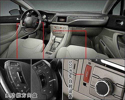 全新的C5采用第二代的中央固定控制式方向盤,包括有覆膜的控制鍵,相當(dāng)便于巡航控制,收聽廣播或是接電話。新車還可以選裝雪鐵龍最新一代的導(dǎo)航裝備,提供有一個7英寸的顯示屏,語音激活的GSM電話,音響系統(tǒng)和衛(wèi)星廣播系統(tǒng)。雪鐵龍的大型車輛以提供頂級的乘員舒適而聞名,全新的C5亦不例外,而且還特別注意了車內(nèi)噪聲,懸掛與座椅。