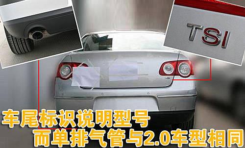 車尾“TSI”的標識表明了邁騰1.4TSI的車型身份,由于邁騰是“B”級車,所以尾部并沒有出現(xiàn)速騰1.4TSI尾部“1.4”的數(shù)字標識。此外,其車尾左下方的排氣管并沒有采用邁騰1.8TSI的雙排氣管設計,而是采用與邁騰2.0車型相同的單排氣管設計。