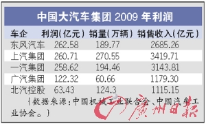 2009年中國成功晉身為全球最大的汽車產(chǎn)銷市場,中國汽車集團的賺錢能力也水漲船高,中國三大汽車集團東風(fēng)、上汽和一汽集團各自的純利潤高達(dá)260億元人民幣(約合38億美元),遠(yuǎn)遠(yuǎn)超過全球聲名顯赫的豐田、大眾、通用,即使與財政情況較好的本田、福特、現(xiàn)代汽車(25億~27億美元)相比,盈利能力也遙遙領(lǐng)先!叭绻粋汽車企業(yè)年營業(yè)額在幾百億元,而利潤只有區(qū)區(qū)幾千萬元,那實在是沒什么意思。”一位中國車企的高層信心十足地對記者這樣說。