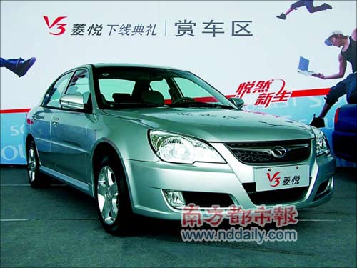 8月28日,東南汽車首款自主研發(fā)新車V3菱悅在福州正式下線,標(biāo)志著東南自主品牌戰(zhàn)略進(jìn)入實施階段。記者獲悉,V3菱悅將于10月初全面上市。業(yè)界普遍預(yù)期其售價區(qū)間為6萬-9萬元。競爭對手為比亞迪F3、奇瑞新旗云等。