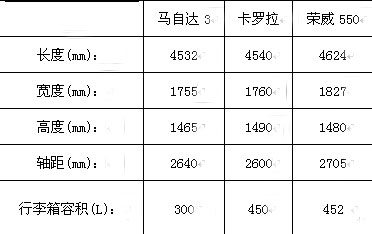 要實用,寬敞的空間不可或缺。而從三輛車型的車身尺寸來看,榮威550最占優(yōu)勢。