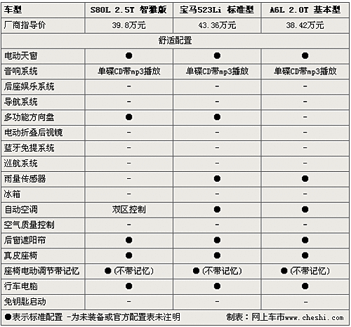 整體來(lái)看,三款車(chē)的配置只能滿足基本的需求,如果您要是有更高的需要還要選擇更高配置的車(chē)款,應(yīng)該說(shuō)三款車(chē)寶馬5的價(jià)格是最高的,但配置并不是最齊全的,S80L的配置要相對(duì)齊備一些,不過(guò)品牌影響力與寶馬還是有差距的。而A6L的配置雖然稍差一些,但售價(jià)是最低的。到底要選擇哪款,還是需要您仔細(xì)斟酌了。