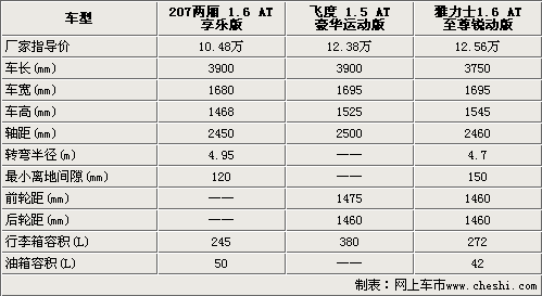 東風(fēng)標(biāo)致旗下的全新A0級轎車-兩廂標(biāo)致207于昨日(3月18日)以7.18—10.48萬元的價格正式上市。兩廂標(biāo)致207作為三廂標(biāo)致207的延伸車型,在繼承了三廂車型優(yōu)點的同時,又添加了許多運動因素。那么剛剛上市的兩廂標(biāo)致207究竟有什么特點呢?市場競爭力究竟如何呢?為了能讓消費者更加清楚地了解這款新車,我們選取了兩款目前市場上比較暢銷的日系兩廂A0級轎車飛度和雅力士,通過與其參數(shù)和配置的全方位對比,讓消費者您對兩廂標(biāo)致207有個了解。