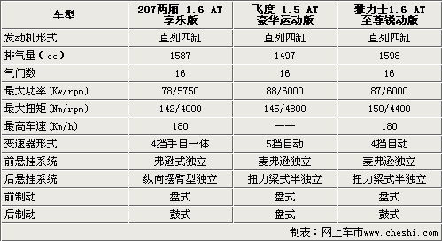 標(biāo)致207、新飛度和雅力士這三款車型均搭載的是直列四缸發(fā)動機,在排量方面存在著略微的差距。標(biāo)致207和雅力士由于排量較大,所在動力輸出上要優(yōu)越于新飛度。在發(fā)動機技術(shù)方面三款車型均運用了各家的最先進技術(shù),標(biāo)致207的1.6升發(fā)動機為標(biāo)致307標(biāo)配的高性能發(fā)動機,本田的i-VTEC和豐田的雙VVT-i技術(shù)均可以使發(fā)動機在具有良好節(jié)油性能的同時得到最大的動力輸出。剎車系統(tǒng)飛度運用了具有良好散熱性能的前后盤式剎車,而標(biāo)致207和雅力士則還是小型車上常見的前盤后鼓式剎車。
