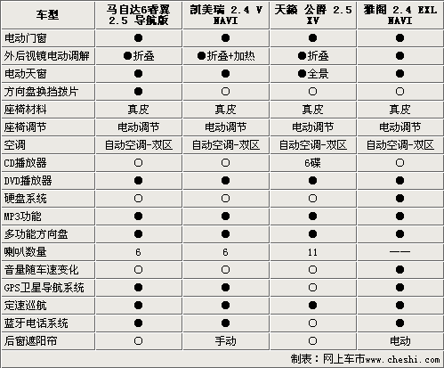 上述四款車(chē)型都屬于該車(chē)系中的頂配車(chē)型,所以在舒適配置方面可謂是應(yīng)有盡有,電動(dòng)天窗、真皮座椅、自動(dòng)雙區(qū)空調(diào)、多功能方向盤(pán)等設(shè)備都成為了標(biāo)準(zhǔn)配置。但仔細(xì)看下來(lái),天籟•公爵的全景天窗比較突出,這是同級(jí)別車(chē)型中很少可以看見(jiàn)的。在娛樂(lè)方面,天籟•公爵的11揚(yáng)聲器系統(tǒng)比較突出,音像水平完全達(dá)到了發(fā)燒的級(jí)別。而雅閣的硬盤(pán)系統(tǒng)顯示出了它的科技感。四款車(chē)型中,只有天籟•公爵沒(méi)有配備GPS衛(wèi)星導(dǎo)航系統(tǒng)外。