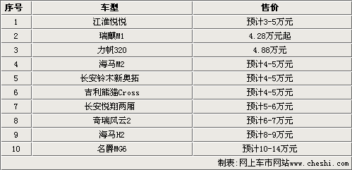 上海國際車展已經(jīng)接近尾聲,很多國內(nèi)自主汽車品牌廠商,在展會期間都推出了全新車型。而且對于自主品牌汽車企業(yè)來說,今年車展推出的兩廂新車也非常多。接下來我們將列舉出十款自主品牌最便宜的兩廂新車,來看看這些產(chǎn)品究竟如何。